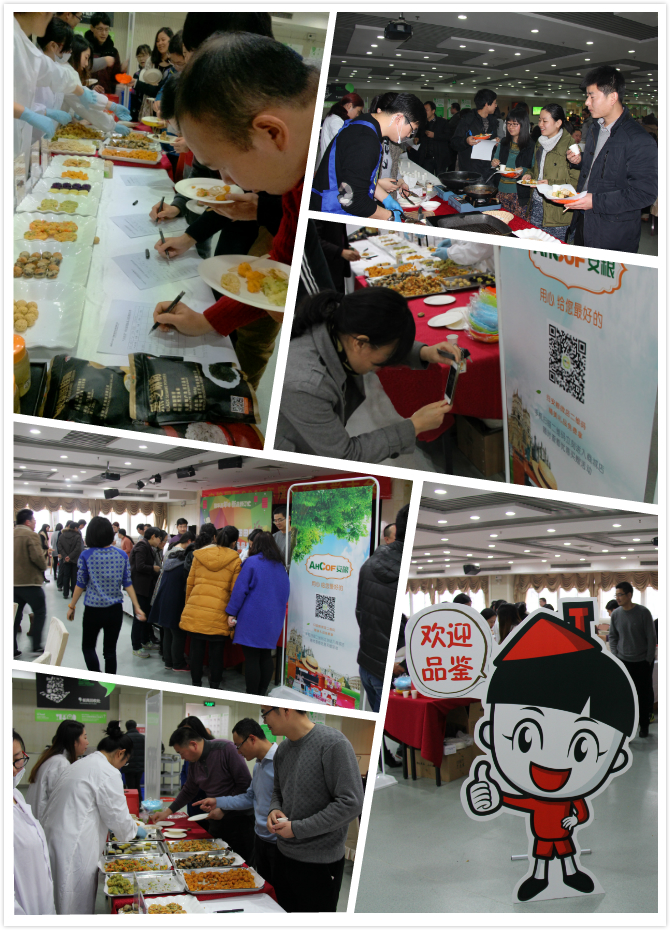 為了進(jìn)一步推廣“田田屋”、“安可?!眱纱笃放破煜碌娜庐a(chǎn)品, 安糧實(shí)業(yè)經(jīng)過精心策劃、認(rèn)真組織,在安糧員工餐廳開展了一場別開生面的新品品鑒和互動(dòng)活動(dòng)。此次活動(dòng)重點(diǎn)展示了包括冷凍調(diào)理食品、進(jìn)口紅酒、健康養(yǎng)生食品、進(jìn)口調(diào)理肉食在內(nèi)的四大系列新品。冷凍調(diào)理食品中的香口薯芝、五彩蔬菜烙、什錦魷魚圈、菇米花、香菇魷魚餅、花桂薯緣、翡翠蔬菜圈;健康養(yǎng)生食品中的雜糧粉飲品、茶樹菇、黑木耳、干筍衣、干香菇等產(chǎn)品均是首次亮相。大家一邊品嘗著盤中的美食、杯中的美酒,一邊認(rèn)真填寫調(diào)查問券對產(chǎn)品的色澤和口味做出評價(jià)。許多員工還對購買產(chǎn)品產(chǎn)生了濃厚興趣,紛紛在現(xiàn)場掃描微店二維碼,并開心地參加了抽獎(jiǎng)、拿到了心儀的贈(zèng)品。