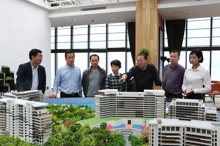 范陽(yáng)董事長(zhǎng)一行不顧旅途勞頓,首先來(lái)到項(xiàng)目辦公生活基地與員工親切交談,并參觀(guān)了員工宿舍;隨后又興致勃勃地前往山頂體驗(yàn)中心和銷(xiāo)售展示中心進(jìn)行考察。黃山秀湖山莊有限公司總經(jīng)理虞小伍、常務(wù)副總李克常向國(guó)貿(mào)集團(tuán)領(lǐng)導(dǎo)匯報(bào)了“安糧黃山太平湖國(guó)際旅游度假區(qū)項(xiàng)目”的整體規(guī)劃、建設(shè)進(jìn)展及內(nèi)部銷(xiāo)售情況。