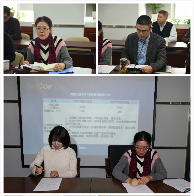 會上,相關(guān)業(yè)務(wù)部經(jīng)理及各子公司負(fù)責(zé)人做了匯報(bào)和交流發(fā)言。為了使各業(yè)務(wù)部和子公司更好的完成年度目標(biāo)任務(wù),清晰目標(biāo)任務(wù)的各項(xiàng)要求,會議安排了簡約的簽約儀式,全體業(yè)務(wù)部經(jīng)理及子公司負(fù)責(zé)人與公司鄭重的簽訂了2017年經(jīng)營目標(biāo)任務(wù)書。