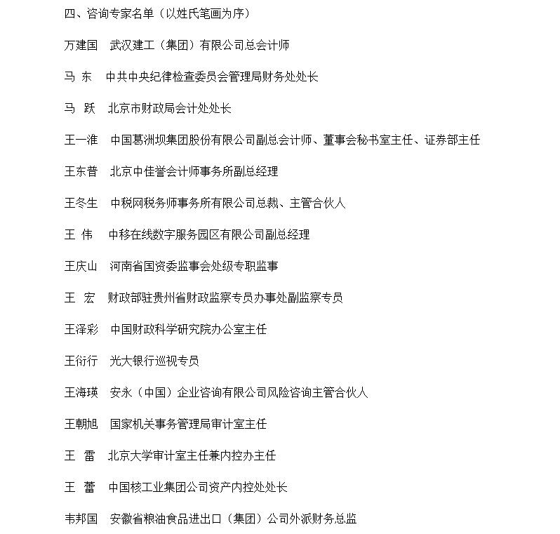 《關(guān)于印發(fā)內(nèi)部控制標(biāo)準(zhǔn)委員會咨詢專家名單的通知》 http://kjs.mof.gov.cn/zhengwuxinxi/gongzuotongzhi/201702/t20170215_2535525.html