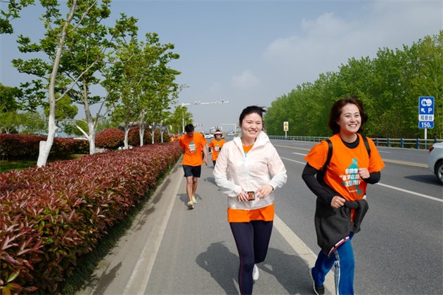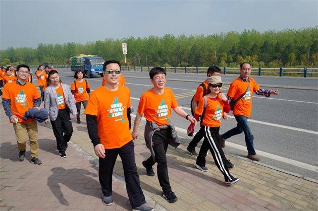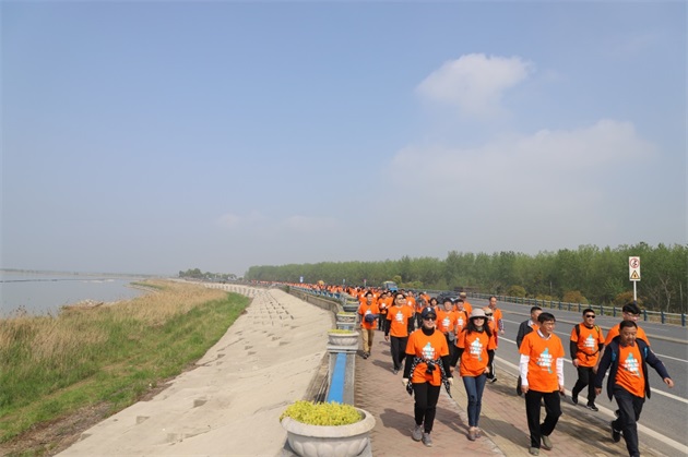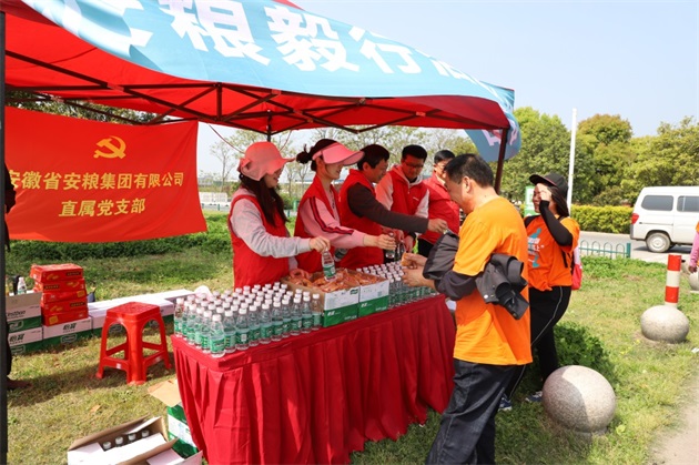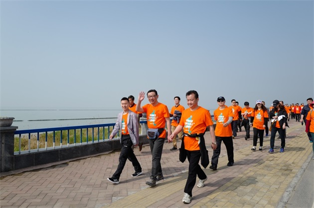 一路上,統(tǒng)一著裝的毅行隊(duì)伍如一股橙色的春潮,激蕩在碧波萬頃、楊柳接岸的巢湖之濱。伴著融融春日,吹著習(xí)習(xí)微風(fēng),毅行隊(duì)伍一邊暢享行走的樂趣,一邊欣賞大美巢湖的秀麗春色,一邊笑談工作或生活的點(diǎn)滴。上午10點(diǎn)5分,來自安糧實(shí)業(yè)的薛寶第一個(gè)沖破終點(diǎn)線,隨后,其他毅行者也陸續(xù)抵達(dá)終點(diǎn)。大家在留言墻上簽名并合影留念,一張張笑臉洋溢著成功的喜悅。
