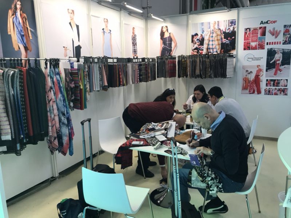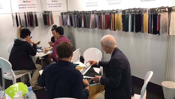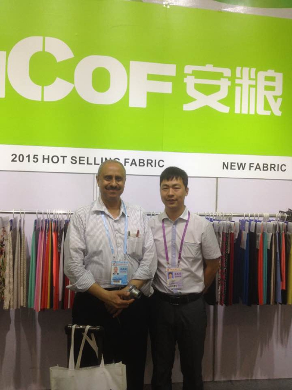 去過廣交會的同事們都知道,廣交會每天的參展任務(wù)是異常繁忙且辛苦的。51日國際勞動節(jié),也是廣交會三期開展的第一天,位于15.4號館主通道旁邊的安糧紡織品展位人流如織,云集的客商都被展位上精心挑選、花樣繁多的樣品所吸引。面料中晶晶閃閃的亮片、時尚FASHION的提花剪花格外受到客人們的青睞,單朋朋和同事們身邊圍滿了膚色各異的外國客商,他們既熱情又耐心地與每一位客商溝通,介紹產(chǎn)品信息、核算價格并及時登記記錄,便于展會后的持續(xù)跟進,展位上一片熱火朝天。