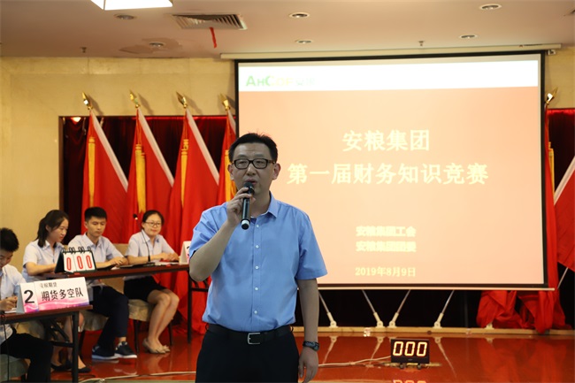 8月9日下午,由集團(tuán)工會、團(tuán)委和集團(tuán)/控股財務(wù)部聯(lián)合舉辦的安糧集團(tuán)第一屆財務(wù)知識競賽決賽在5樓多功能廳拉開帷幕,安糧集團(tuán)黨委書記、董事長曹訓(xùn)立,黨委委員、副總裁、工會主席周洪,安糧控股財務(wù)總監(jiān)張來往等蒞臨比賽現(xiàn)場,大賽評委由安糧集團(tuán)財務(wù)部總經(jīng)理程松林領(lǐng)銜擔(dān)任。通過此前進(jìn)行的預(yù)賽,共有六組團(tuán)體賽隊伍和十名個人賽選手晉級決賽。