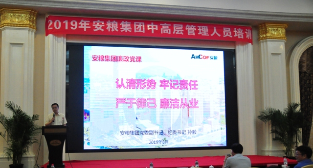 為深入推進“不忘初心、牢記使命”主題教育,深化落實 “三個以案”教育,8月16日至17日,安糧集團黨委副書記、紀委書記孫毅在安糧集團2019年中高層管理人員培訓(xùn)期間,為參加學(xué)習(xí)的安糧集團、控股本部及貿(mào)易、建工兩大板塊的120多名黨員干部講授題為《認清形勢 牢記責(zé)任 嚴于律己 廉潔從業(yè)》專題廉政黨課。