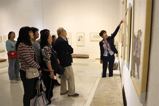 博物館內青墻黛瓦、翹角飛檐,處處展示著徽州文化的獨特魅力。在講解員的帶領下,大家先后參觀了徽派石雕瑞獸展廳、古徽州木雕展廳、石刻人物造像展廳、百匾堂展廳等地方。一棟棟矗立于展區(qū)“無夢園”中的清代老宅給了大家視覺上的直接震撼,館中的民俗用品更將大家?guī)Щ亓送舻臅r光。