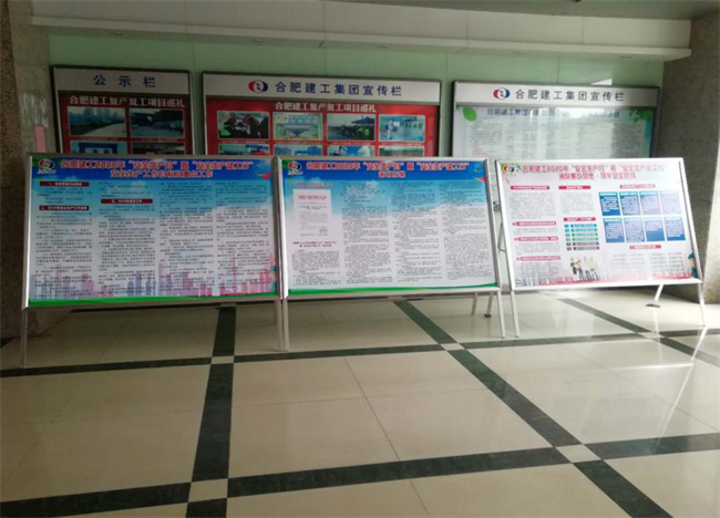 為切實(shí)增強(qiáng)全員安全生產(chǎn)意識和提升全員安全素質(zhì),合肥建工制作了“安全生產(chǎn)月”暨“安全生產(chǎn)建工行”宣傳展板在本部一樓大廳進(jìn)行宣傳展示,各項(xiàng)目部在工程顯著位置張貼、懸掛“安全生產(chǎn)月”宣傳標(biāo)語、橫幅、掛圖等,同時(shí)利用 LED 屏宣傳,在LED電子顯示屏上持續(xù)滾動(dòng)播放安全公益廣告等,積極營造關(guān)心安全生產(chǎn)、參與安全發(fā)展的濃厚輿論氛圍。