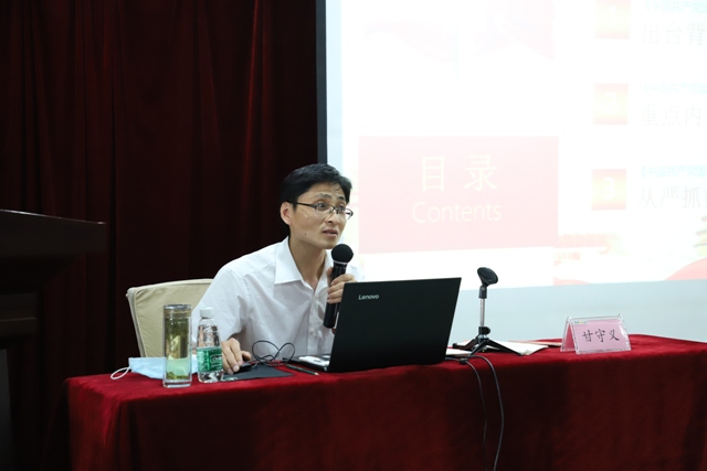 在兩個小時的課程中,甘教授充分聯(lián)系《條例》制定的背景、內(nèi)容和具體貫徹落實等三個方面對《條例》進行了全面解讀,并深入詮釋了《條例》作為我們黨關于國有企業(yè)第一部重要黨內(nèi)法規(guī)的重要意義。
