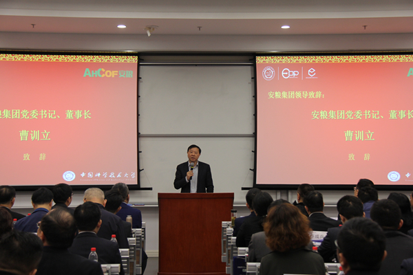 2020年10月30日,中國(guó)科學(xué)技術(shù)大學(xué)—安糧集團(tuán)EDP、MBA研修班在中國(guó)科學(xué)技術(shù)大學(xué)國(guó)際金融研究院隆重開(kāi)班,安糧集團(tuán)董事長(zhǎng)曹訓(xùn)立和中科大管理學(xué)院黨委副書(shū)記芮鋒分別致辭。