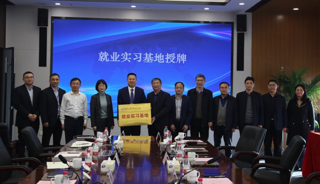 簽約儀式上,朱中文與胡笑旋代表雙方簽署戰(zhàn)略合作協(xié)議。韓文輝與郭志勇代表雙方交接了“就業(yè)實習(xí)基地”牌匾。