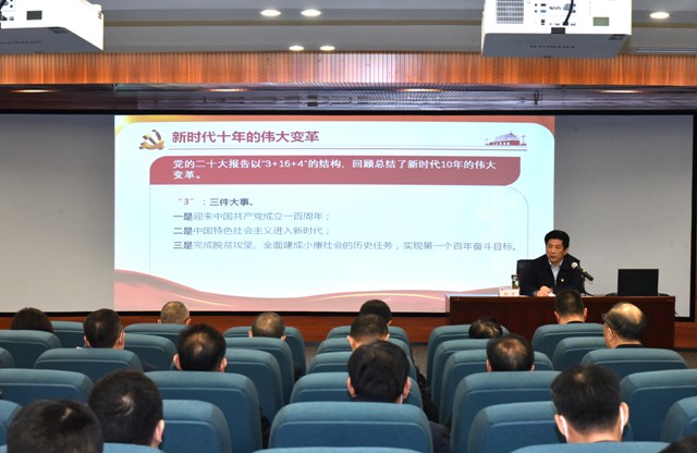 楊軍為安徽國貿(mào)黨員領(lǐng)導(dǎo)干部作了“深刻領(lǐng)會豐富內(nèi)涵 踔厲奮發(fā)邁向新征程 深入學(xué)習(xí)宣傳貫徹黨的二十大精神”主題宣講。