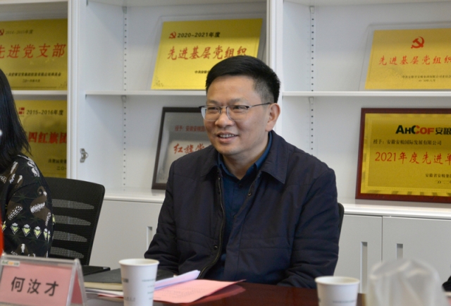 安徽國(guó)貿(mào)黨委委員、紀(jì)委書(shū)記何汝才到安糧國(guó)際宣講黨的二十大精神并調(diào)研指導(dǎo)工作