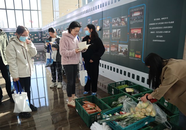 “一本圖書(shū)即可換一份蔬菜,還可以得到一個(gè)環(huán)保帆布袋”,活動(dòng)現(xiàn)場(chǎng),工作人員向大樓的職工講解兌換規(guī)則,職工們帶著家中閑置的書(shū)籍有序的兌換。“家里閑置的書(shū)籍有點(diǎn)占地方,賣(mài)掉又覺(jué)得可惜,換蔬菜的活動(dòng)正好解決這個(gè)問(wèn)題,而且這些書(shū)籍還可以給鄉(xiāng)村小學(xué)的孩子們?cè)黾娱喿x量,這個(gè)活動(dòng)很有意義?!甭毠兞嘀卟硕Y包開(kāi)心的說(shuō)到。