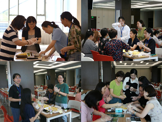 接著進(jìn)入了大家最躍躍欲試的環(huán)節(jié)——DIY綠豆糕。同事們圍坐一堂,有的揉面,有的裝模,有的擺盤,有的包裝,大家一邊認(rèn)真制作,一邊相互交流。在大家精心制作下,一個(gè)個(gè)、一盒盒香甜美味、花色各異的綠豆糕呈現(xiàn)在眼前?;顒?dòng)現(xiàn)場(chǎng)其樂融融,洋溢著和諧、平安與幸福的氛圍,大家一起感受親手制作綠豆糕帶來的歡樂。