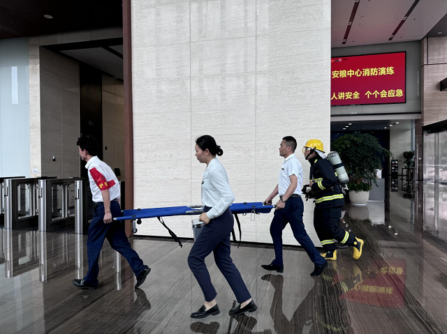 6月24日下午3時(shí),消防應(yīng)急演練總指揮下達(dá)演練開始指令。隨著煙霧彈在辦公樓內(nèi)拋擲,煙霧觸發(fā)安糧中心辦公樓火警警報(bào),頓時(shí)消防警報(bào)和消防警鈴響起。隨后各小組迅速按照部署展開滅火救援行動(dòng),消防和應(yīng)急救援隊(duì)員有序引導(dǎo)員工緊急疏散撤離至避難層,緊接著包河區(qū)應(yīng)急救援大隊(duì)消防救援車輛到達(dá)現(xiàn)場(chǎng),開展了火情偵查、外圍滅火等系列滅火救援行動(dòng)。整個(gè)演練過(guò)程中,各小組配合默契、分工有序,圓滿完成了緊急報(bào)警、警戒疏散、醫(yī)療救護(hù)和滅火救援等演練環(huán)節(jié),及時(shí)排除了火災(zāi)險(xiǎn)情,有效達(dá)到了演練目的和預(yù)期效果。