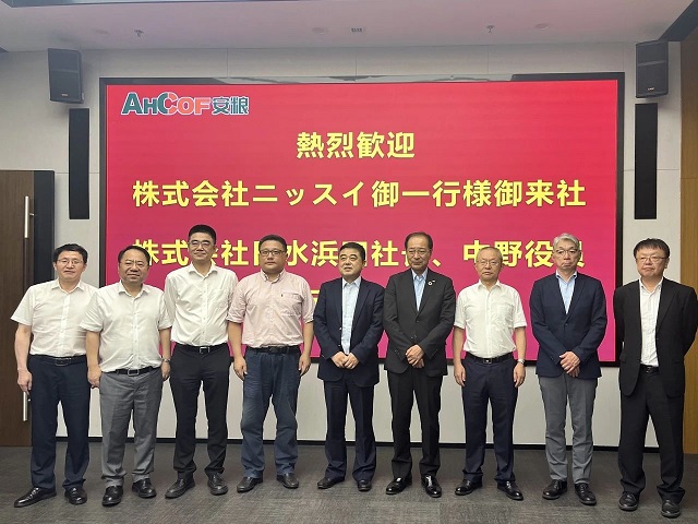 7月2日,日水浜田社長一行在安糧集團(tuán)總裁楊曉剛陪同下,抵達(dá)安糧實(shí)業(yè)直屬工廠——巢湖嘉誼食品有限公司(以下簡稱“巢湖嘉誼”)進(jìn)行訪問。座談會(huì)上雙方圍繞著良好的合作歷史、目前合作業(yè)務(wù)開展情況以及未來合作發(fā)展方向等議題深入交流,希望借助日水品牌的全球影響力,充分發(fā)揮日水創(chuàng)新研發(fā)技術(shù)優(yōu)勢和安糧制造優(yōu)勢,不斷推出特色新產(chǎn)品開拓國內(nèi)外市場。會(huì)上,楊曉剛表示未來安糧食品產(chǎn)業(yè)園規(guī)劃專設(shè)日水產(chǎn)品業(yè)務(wù)板塊,希望可以在日水產(chǎn)品進(jìn)口、日水技術(shù)安糧加工、開發(fā)中國市場方面進(jìn)行全方位合作,推動(dòng)雙方友好合作再上新臺階。隨后,日水浜田社長一行參觀了工廠的生產(chǎn)車間,工廠負(fù)責(zé)人重點(diǎn)介紹了安糧旗下兩家日水合作工廠巢湖嘉誼和安慶嘉潤吸收合并、業(yè)務(wù)整合及相關(guān)工廠改造具體情況,同時(shí)詳細(xì)介紹了日水產(chǎn)品生產(chǎn)全過程,各工序嚴(yán)格的品質(zhì)控制得到了日水一行的肯定。