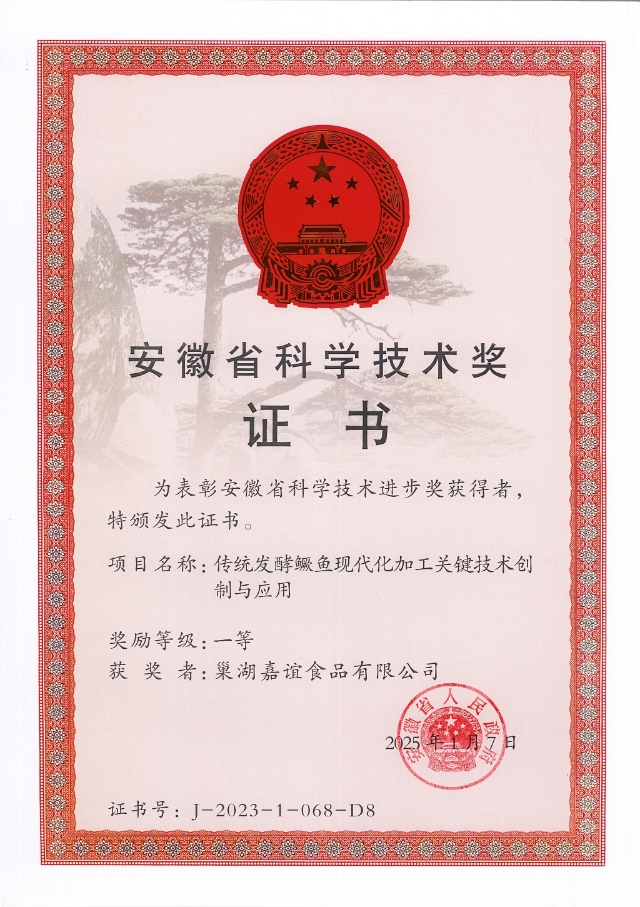 近日,安徽省科學(xué)技術(shù)獎評選結(jié)果正式公布,安糧旗下巢湖嘉誼食品有限公司憑借“傳統(tǒng)發(fā)酵鱖魚現(xiàn)代化加工關(guān)鍵技術(shù)創(chuàng)制與應(yīng)用”項目,榮獲安徽省科學(xué)技術(shù)獎一等獎。這一重大科技成果的取得,充分彰顯了安糧堅持科技創(chuàng)新驅(qū)動發(fā)展、深化產(chǎn)學(xué)研合作的戰(zhàn)略成效。