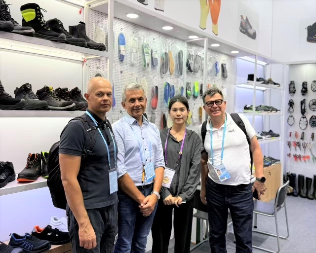 在工具類展區(qū),安糧在常規(guī)安全鞋產(chǎn)品基礎(chǔ)上,新增勞保手套、多功能剪刀、冰爪、反光材料等多款新產(chǎn)品,全面覆蓋戶外安全防護(hù)場(chǎng)景,凸顯專業(yè)性全面性雙重優(yōu)勢(shì)。為讓客戶直觀感受產(chǎn)品品質(zhì),展區(qū)采用原木色層板與洞洞板靈活組合的裝修設(shè)計(jì),方便客戶觸摸、體驗(yàn)產(chǎn)品的材質(zhì)、工藝與功能如拉扯勞保手套的耐磨度、體驗(yàn)多功能剪刀的剪切效果、查看反光材料在模擬黑暗環(huán)境下的警示亮度。目前已有來自法國的戶外用品品牌商提出樣品寄送需求,另有來自智利的的安全防護(hù)設(shè)備經(jīng)銷商明確表達(dá)長期合作意向。